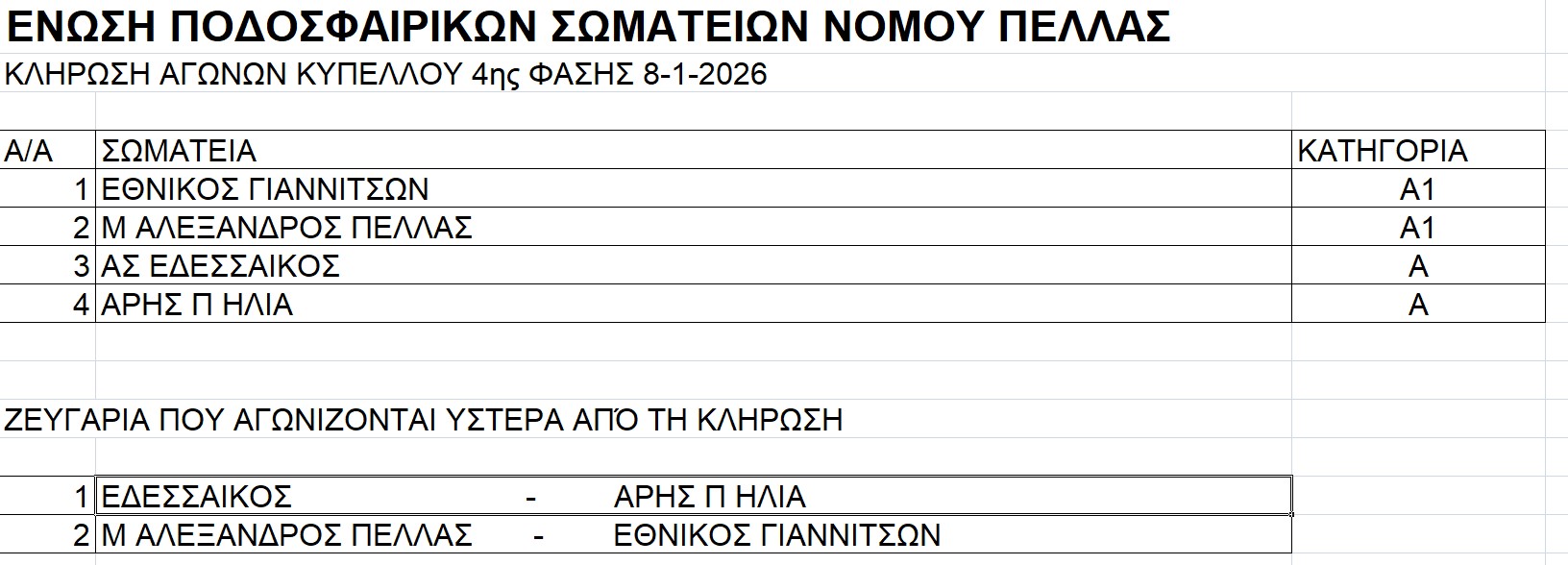 Πρόγραμμα αγώνων κυπέλλου 20-21/12/2025
